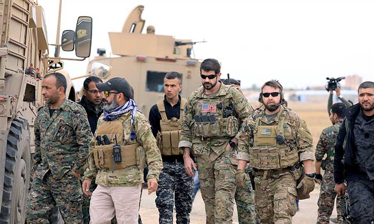 للولايات المتحدة اليوم بين 3 آلاف و 4 آلاف جندي في سوريا، معظمهم من القوات الخاصة، وهم يتركزون في منطقتين: في شمال شرق الدولة، في الجيب الكردي؛ وفي الجنوب الشرقي، في منطقة طنف، معبر الحدود مع العراق وعلى مسافة غير بعيدة من الحدود مع الأردن وإسرائيل.