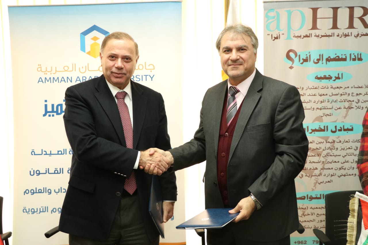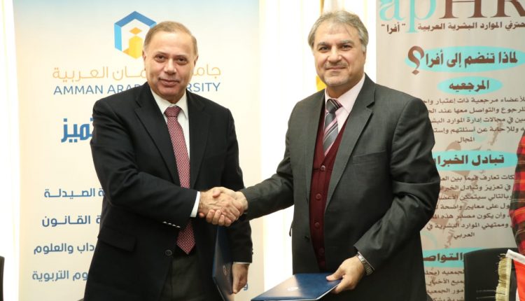توقيع إتفاقية تعاون بين جمعية محترفي الموارد البشرية العربية “أفرا” وجامعة عمان العربية