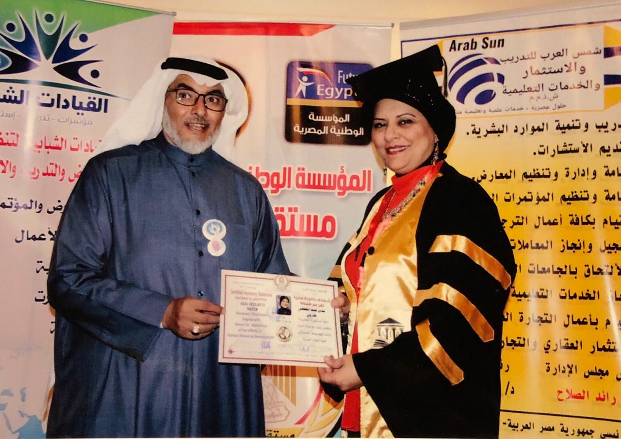 تكريم السيدة ” ندى هارون ” بشهادة الدكتوراة الفخرية في تنمية الموارد البشرية
