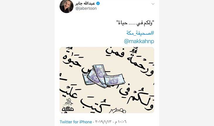 وهج ة24 : تسبب كاريكاتير في صحيفة «مكة» السعودية اليومية، نشر يوم أمس الأول، في ردود فعل غاضبة ورافضة، على مواقع التواصل الاجتماعي، بسبب قيام رسام الكاريكاتير بتغيير كلمة في آية كريمة، ووضع مكانها ورقة فئة 500 ريال سعودي.