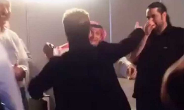 وبحسب الفيديو، فإنه وبمجرد رؤية الفنان السعودي للفنانة الإماراتية صرخ مندهشا “شمة!”، ليقوم باحتضانها وتقبيلها.
