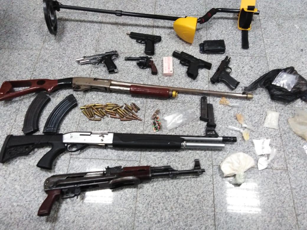 وفي القضية الأخرى تمكن العاملون في ادارة مكافحة المخدرات من تحديد مكان تواجد مجموعة من الاشخاص المشبوهين بقضايا ترويج المواد المخدرة وحيازة وإطلاق العيارات النارية وترويع المواطنين واقلاق الراحة العامة في منطقة سحاب شرق العاصمة حيث جرى مداهمة المكان وألقي القبض على ثماينة اشخاص جميعهم من ذوي الأسبقيات الجرمية ومن بينهم اربعة أشخاص مطلوبين بعدة طلبات ، وبتفتيش المكان ضبط ثمانية اسلحة نارية وكمية من الذخيرة اضافة الى نصف كيلو من بودرة الحشيش الصناعي وكميات متفرقة من الحبوب والمواد المخدرة ، وبوشرت التحقيقات .