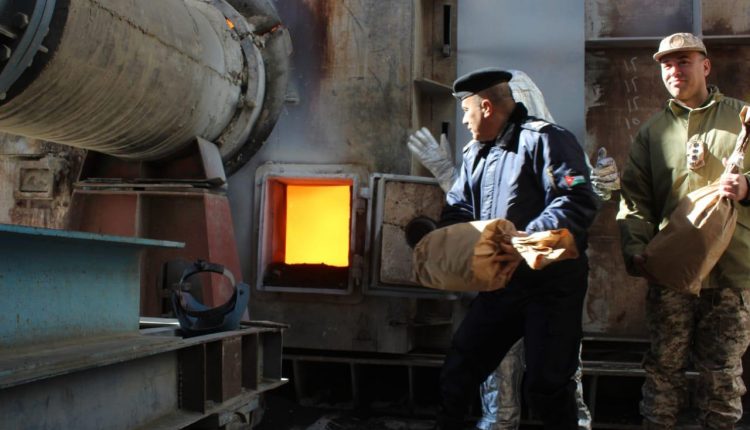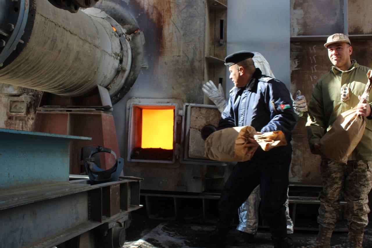 وأشرف على عملية الإتلاف لجنة خاصة برئاسة مساعد مدير الأمن العام للأمن الجنائي العميد محمد الملاحيم ومدير إدارة مكافحة المخدرات ومدير إدارة المختبرات والأدلة الجرمية ومدعي عام محكمة امن الدولة .