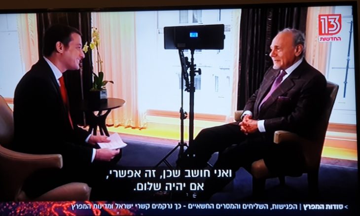 وأوضح الفيصل أن ما ورد على لسانه يعكس آراءه هو ولا يمثل موقف الرياض معربا عن أمله أن يزور إسرائيل يوما ما. وخلال التحقيق كشف عن لقاء بين رئيس حكومة الاحتلال بنيامين نتنياهو، مع رئيس مجلس الأمن الوطني السعودي ومبعوث الملك، بندر بن سلطان، في دولة ثالثة، في أيلول/ سبتمبر من العام 2014. وفي ختام العدوان على غزة قدمت الرياض وقتها مبادرة سلام تتضمن إعادة إعمار غزة، واستئناف المفاوضات مع الجانب الفلسطيني، ووضع إستراتيجية عمل مشتركة لمواجهة “النفوذ الإيراني”. وأوضحت القناة أن نتنياهو أعرب عن حماسه للمبادرة السعودية حينها، وأنه توصل خلال اجتماعه مع بندر بن سلطان، إلى اتفاق مبدئي يقومون من خلاله باستمالة الرأي العام الدولي لصالح المبادرة، والدعوة إلى قمة في الأمم المتحدة بهذا الشأن. وأكدت أن نتنياهو في نهاية المداولات رفض التنازل عن تفاهمات مع السعودية ما أدى إلى وقف المباحثات مما أصاب السعوديين. بالإحباط ودفعهم لوصف نتنياهو بالكاذب وحملوه مسؤولية ما سيجري. يشار إلى أن باراك رافيد، عرض حلقات متلفزة حول خبايا العلاقات الإسرائيلية الخليجية.