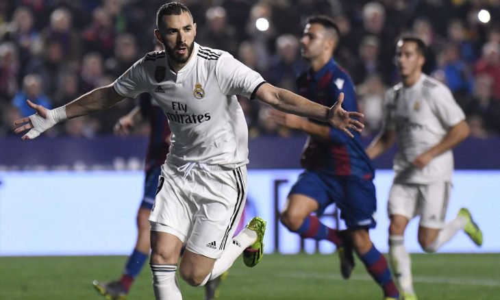 وجاء هدفا الريال من ركلتي جزاء أحرزهما كريم بنزيمه وغاريث بيل في الدقيقتين 43 و78، بعدما احتسبهما حكم اللقاء إثر لجوئه لتقنية حكم الفيديو المساعد، فيما أحرز روجر مارتي هدف ليفانتي الوحيد في الدقيقة .60