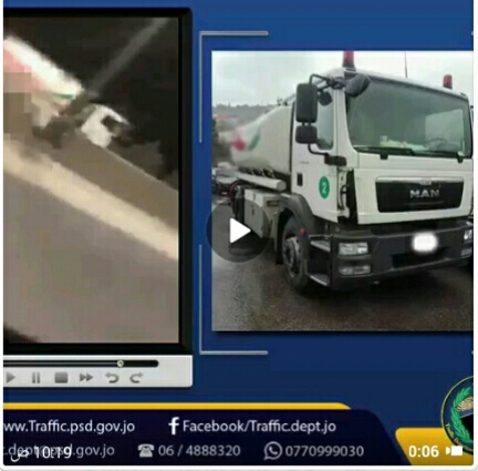 وهج 24 : قال الناطق الإعلامي باسم مديرية الأمن العام أن العاملين في قسم المباحث المرورية في إدارة السير تمكنوا من ضبط سائق صهريج محروقات كان يقوم بالسير بطريقة متهورة بعكس اتجاه السير في أحد الشوارع الرئيسية المفصولة بجزيرة وسطية في العاصمة بعد التحقيق بمقطع فيديو انتشر عبر مواقع التواصل الاجتماعي والذي يظهر خلاله ارتكاب السائق لتلك المخالفة الخطرة التي عرضت حياته ومستخدمي الطريق للخطر.