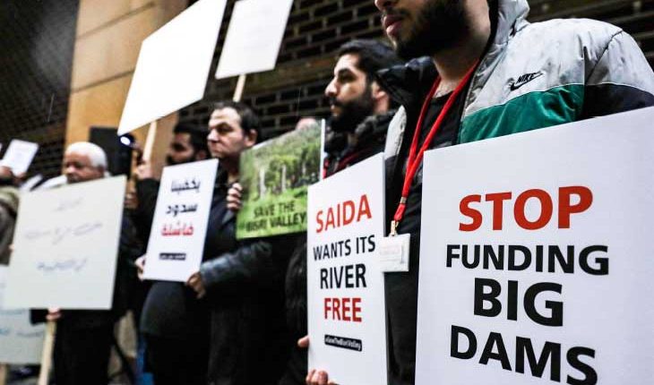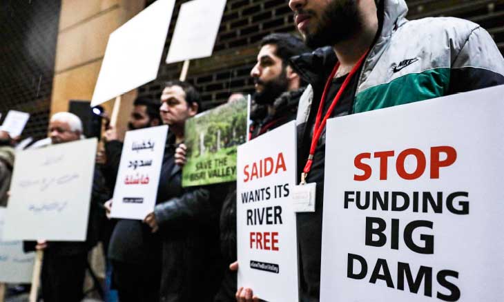 تجمُّع أمام مقرّ البنك الدولي في بيروت احتجاجاً على مشروع بناء سد يسهم في تمويله