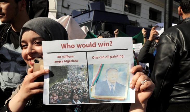 وتشهد الجزائر حراكا شعبيا منذ إعلان ترشيح بوتفليقة لولاية خامسة في 9 فبراير/ شباط الماضي، أخذ بعدا مليونيا منذ 22 شباط/فبراير الماضي. وقد خرج الجزائريون في مظاهرات مليونية، أمس 8 مارس/آذار في ثالث جمعة لهم، رفضا لاستمرار بوتفليقة والنظام.