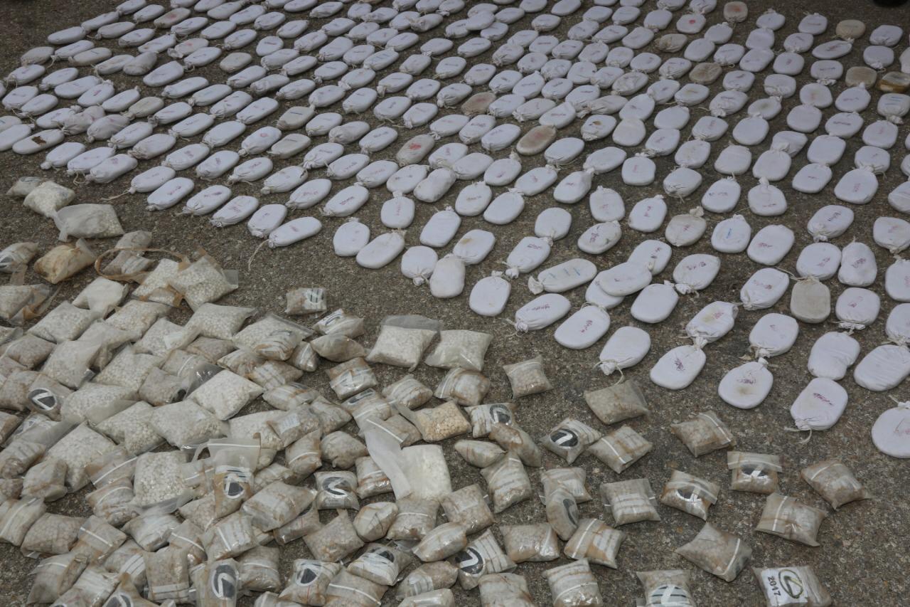 واضاف الناطق الاعلامي انه وبتمشيط المنطقة عثر على كيسين كبيرين (شوالين ) دفنا تحت الاتربة وبداخلهما ٣٢٤ كفاً من مادة الحشيش و ١٨٧ الف حبة مخدرة وما زال التحقيق جاريا لتحديد هوية المتورطين وضبطهم .