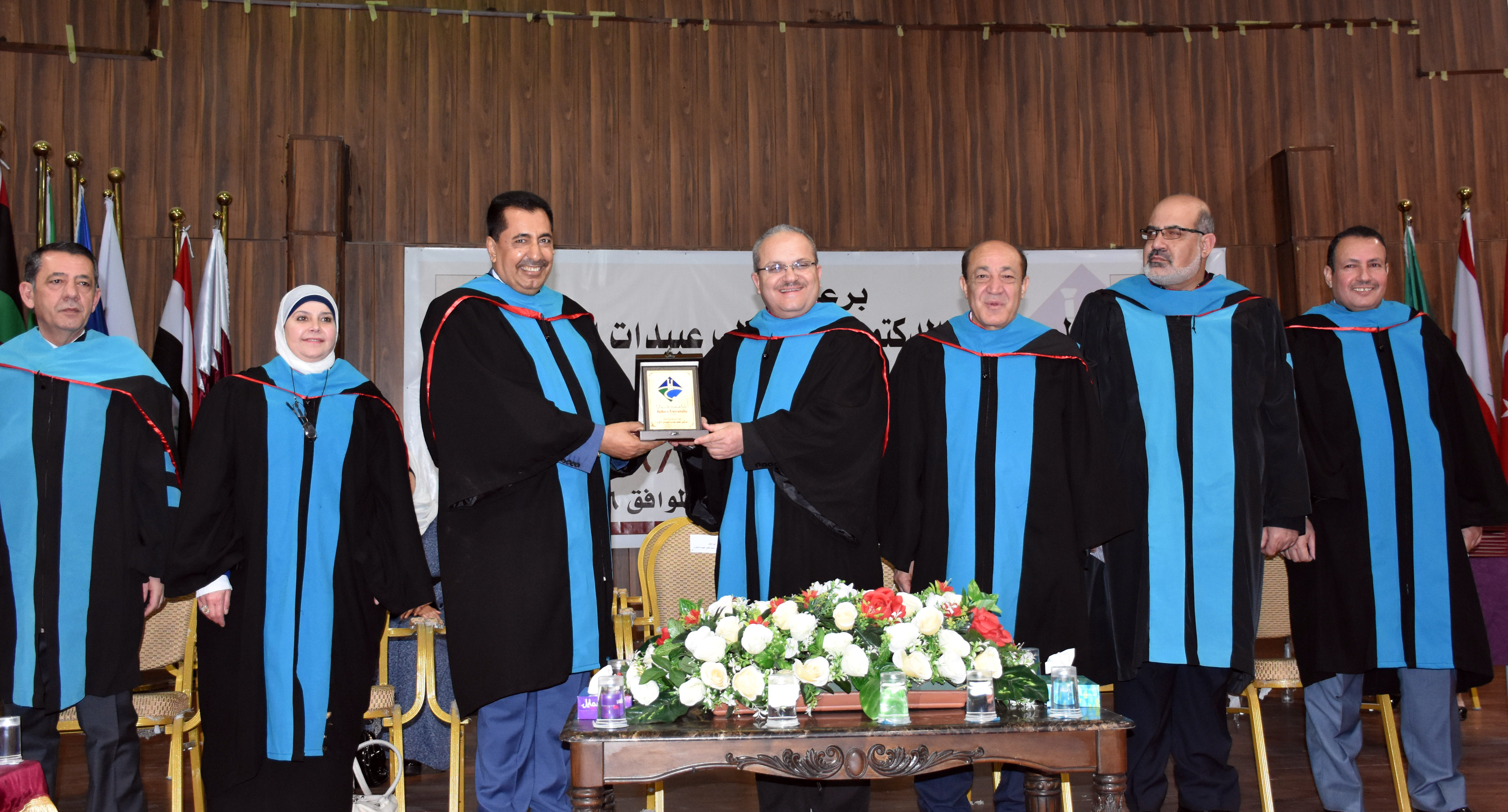 ونهاية الحفل سلم معالي الدكتور محمد طالب عبيدات الشهادات على مستحقيها والجوائز على الطلبة الأوائل .
