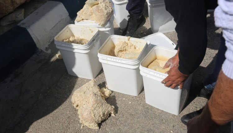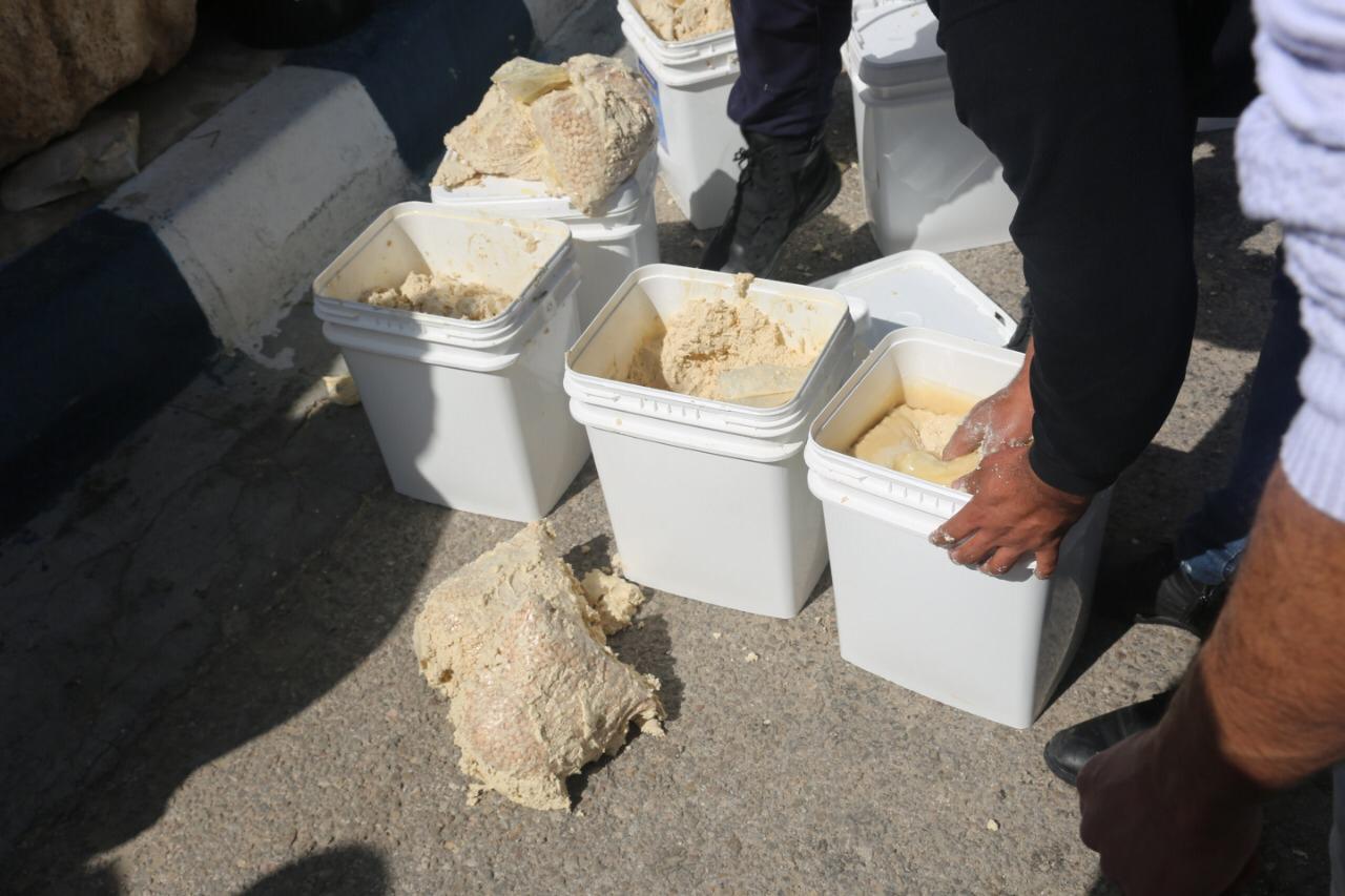 إدارة مكافحة المخدرات تحبط تهريب ٣٠٠ ألف حبة مخدرة أخفيت داخل مادة غذائية (حلاوة ) وتلقي القبض على أربعة اشخاص تورطوا بالقضية