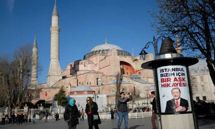 وسبق أن ذكر الرئيس التركي أنهم يخططون بعد الانتخابات المحلية المزمعة، الأحد المقبل، “لإعادة آيا صوفيا إلى أصله، وليس جعله مجانيا فقط، وهذا يعني أنه لن يصبح متحفًا، وسيسمى مسجدًا”