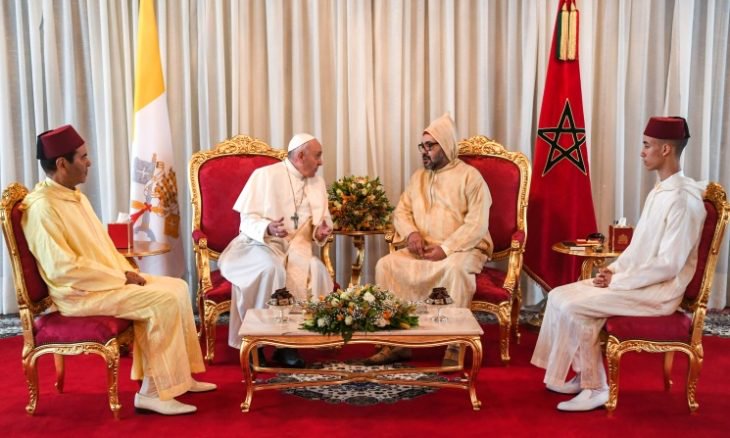 ويتوجه البابا والعاهل المغربي في موكب نحو مسجد حسان التاريخي في العاصمة المغربية الرباط، حيث يلقيان خطابا لحوالي 25 ألف شخص ينتظر حضورهم في ساحة المسجد تحت سماء ماطرة. ويجريان بعد ذلك مباحثات ثنائية في القصر الملكي. ويلتقي الزعيم الروحي لحوالي 1,3 مليار كاثوليكي في العالم الأحد بأتباع الديانة المسيحية التي تشكل أقلية في المغرب وأكثرية أفرادها من الأفارقة الجنوب صحراويين.