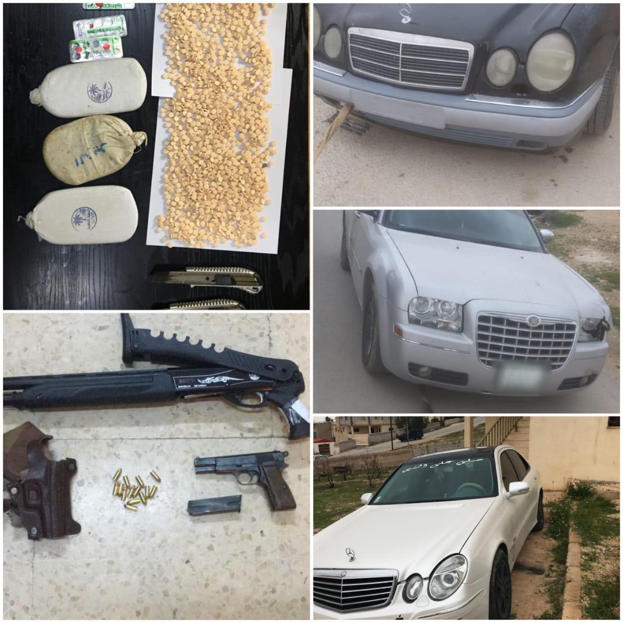 حيث القي القبض في محافظة المفرق على اربعة اشخاص احدهما مطلوب بحقه طلبان ، وضبط بحوزتهم سلاحان ناريان وكميات متفرقة من المواد المخدرة