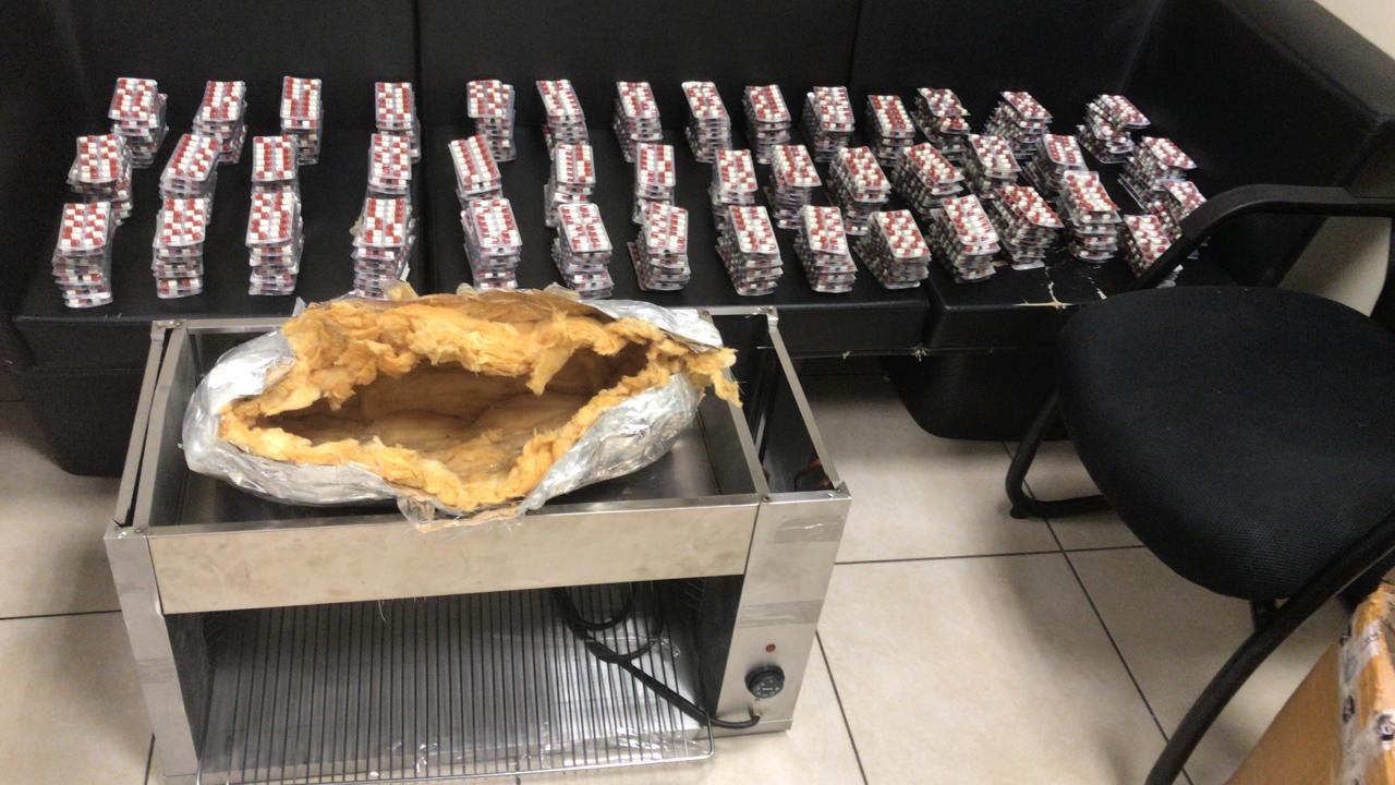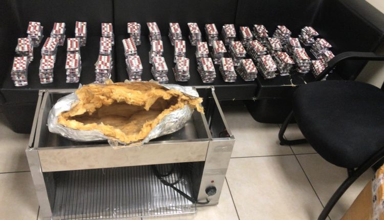 الأمن يحبط محاولة تهريب ٦ آلاف حبة مخدرة أخفيت داخل فرن كهربائي