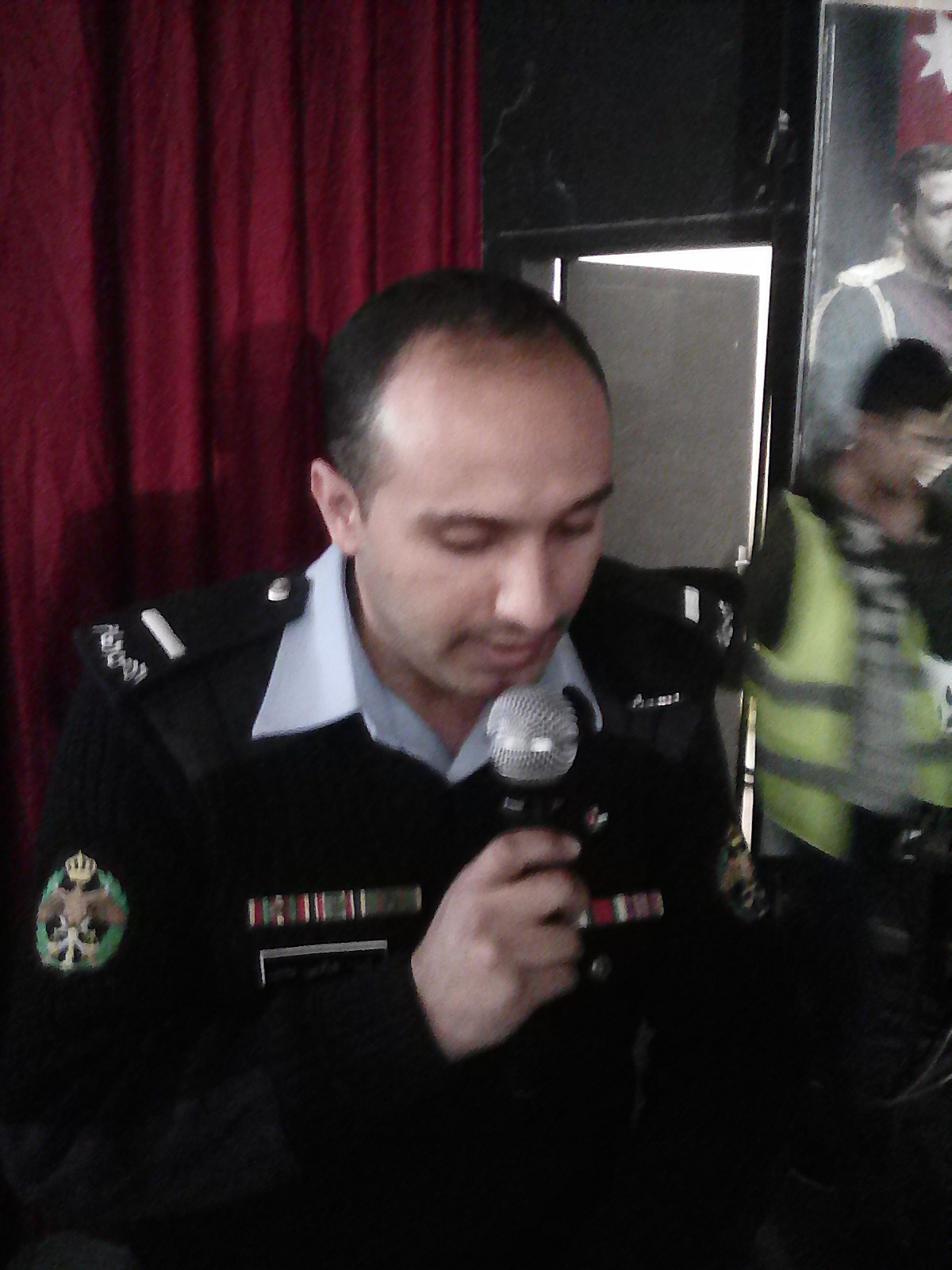 حيث تم رصد نشمي من نشامى الأمن العام الوكيل ” وليد بدر ” من قسم العلاقات العامة والشرطة المجتمعية / مركز أمن المهاجرين وهو يعمل بكل روح عالية والتعاون المميز مع أعضاء المجلس المجلس لإنجاح الفعالية وتعامله الراقي مع الحضور والذي ترك أطيب الأثر في نفوس وقلوب الحضور وبإبتسامته الطيبة مع طلاب مدرسة برهان كمال المهنية أسهم مساهمة فاعلة في إنضباط الطلاب المشاركين بالحفل ، ولا شك أن تعامل الوكيل وليد بدر الراقي قد عزّز من مبادئ رسالة الأمن العام والشرطة المجتمعية بكسر الحاجز ما بين المواطن ورجل الأمن العام ، وصدقا نقول هنيئا للأمن العام بالنشمي الوكيل وليد بدر الذي نفتخر به وبكافة نشامى الأمن العام .