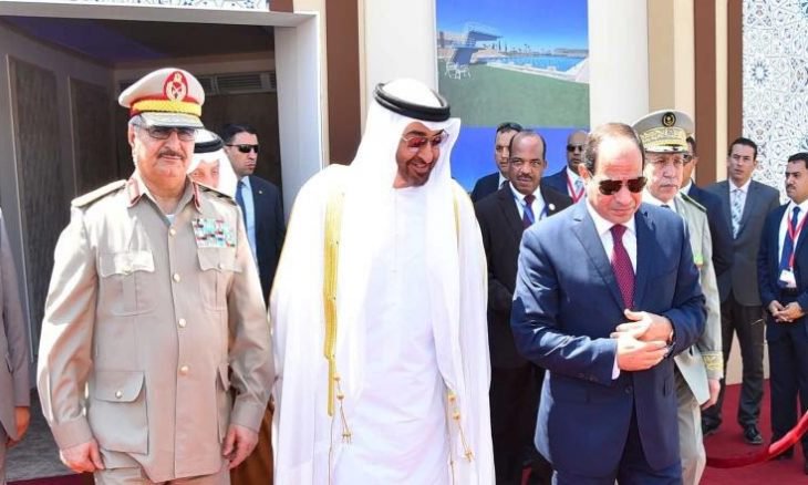 أما دولة الإمارات العربية المتحدة، فهي الداعم العسكري الرئيسي لحفتر، وهو ما جعلها عدة عرضة لسهام الأمم المتحدة. وقد أصدرت أبوظبي بياناً مشتركا مع فرنسا وإيطاليا والولايات المتحدة والمملكة المتحدة، انتقدوا فيه “الأعمال الانفرادية” ، داعين “جميع الأطراف إلى تخفيف التوترات”. وهو بيان، اعتبرت ”لوموند” أن الهدف منه هو الحفاظ على شراكة باريس-أبوظبي، التي لعبت دوراً رئيسياً في صعود حفتر على الساحة الدولية، مع إظهار خلاف تكتيكي معه.