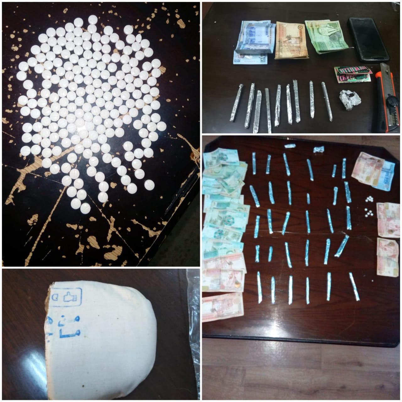 وفي محافظة العاصمة نفذت مداهمتان لشقتين بعد ورود معلومات حول استخدامها من قبل مروجين للمواد المخدرة ؛الاولى في منطقة الصويفية والقي القبض خلالها على مروج للمواد المخدرة وضبط بحوزته كمية من مادة الحشيش المخدرة و (٢٢٧) حبة كبتاغون ، والثانية في منطقة الدوار السابع والقي القبض خلالها على شخصين من مروجي المواد المخدرة احدهما بحقه ثلاثة طلبات امنية ، وبتفتيش الشقة عثر داخلها على كف مقطع من مادة الحشيش المخدرة و قطع من ذات المادة معدة للبيع وكمية من الحبوب المخدرة .