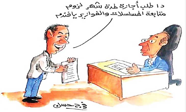 وفي «الأهرام» أخبرنا الرسام فرج حسن أنه ذهب لزيارة صديق له يعمل مديرا في أحد الوزارات فوجد موظفا يقدم له طلب ويقول له: دا طلب إجازة بمدة شهر لزوم متابعة المسلسلات والفوازير يا فندم.