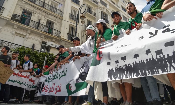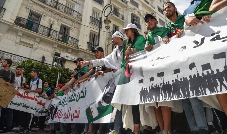 وتحدى الطلبة ظروف الصيام مرة أخرى وخرجوا في مظاهرة احتجاجية بوسط العاصمة ومدن عدة من البلاد، للثلاثاء الـ13 على التوالي، للمطالبة برحيل كل رموز النظام القائم ورفض إجراء الانتخابات الرئاسية المقررة في الرابع من تموز/ يوليو المقبل، حيث ردد المتظاهرون “ماكانش ( ليس هناك) انتخابات يا العصابات”.