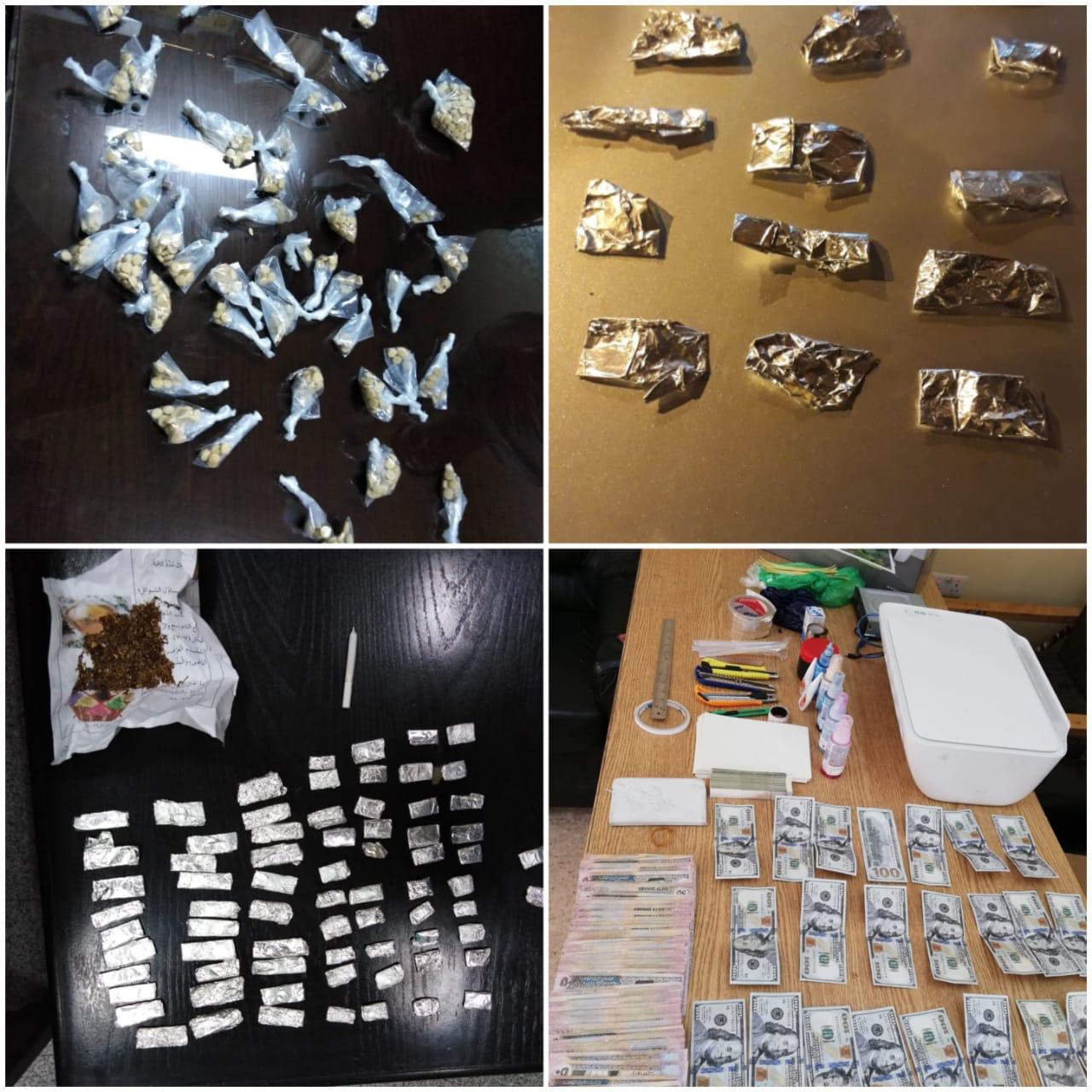وألقت إدارة مكافحة المخدرات القبض على ١٢ شخصاً ضمن ٧ قضايا تم التعامل معها وسط وجنوب العاصمة ، ففي منطقة حي نزال جرت مداهمة منزل أحد مروجي المواد المخدره وألقي القبض عليه وبحوزته ٤ كفوف وربع من مادة الحشيش المخدرة وكميات أخرى من الحبوب المخدرة مختلفة الأنواع ومبلغ مالي ، وفي الجبل الأخضر جرت مداهمة منزل عدد من مروجي المواد المخدرة حيث القي القبض على ٣ منهم وبحوزتهم كميات من المواد المخدرة ، وفي منطقة الوحدات ألقي القبض على اثنين من مروجي المواد المخدرة داخل مركبة وبحوزتهما كميات من المواد المخدرة.