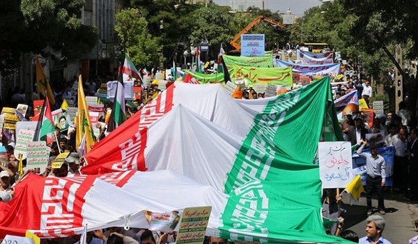يذكر ان مسيرات يوم القدس العالمي المليونية انطلقت في أكثر من 950 مدينة وبلدة في ايران عند الساعة العاشرة من صباح اليوم (5:30 ت غ) والتي تقام سنويا في الجمعة الاخيرة من شهر رمضان المبارك.