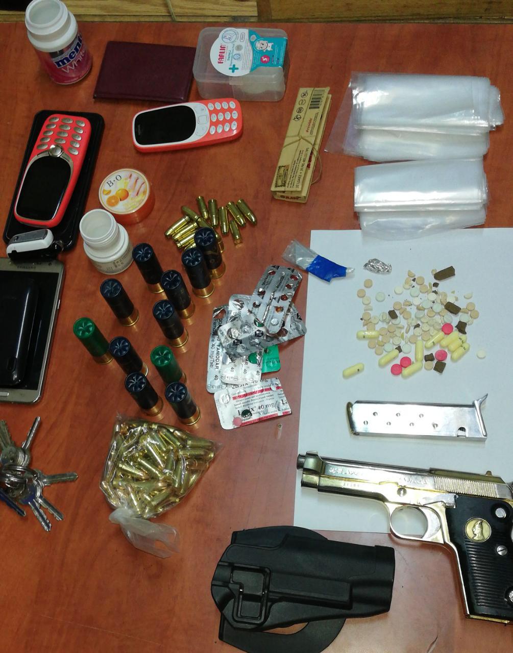 قال الناطق الاعلامي باسم مديرية الامن العام ان العاملين في ادارة مكافحة المخدرات باشروا منذ ايام تتبع ورصد احد مروجي المواد المخدرة وهو من الاشخاص الخطرين وبحقه ١٥ طلبا في قضايا المخدرات والسلب والخطف وظهر خلال اغنية جرى تداولها عبر مواقع التواصل الاجتماعي وهو يحمل اسلحة نارية ويقوم بالتهديد، وتحدى ان يقوم احد بالقبض عليه هو ومن معه من مروجين وذوي اسبقيات ، حيث وردت معلومات حول نيته نقل كمية من المواد المخدرة من محافظة اربد باتجاه العاصمة وتم اتخاذ الاجراءات اللازمة للقبض عليه . واضاف الناطق الاعلامي انه تم القاء القبض عليه وكان يرافقه شخص من جنسية عربية ، وبتفتيشه عثر بحوزته على سلاح ناري و١٠٠ طلقة حية اضافة الى كمية من الحبوب المخدرة ومجموعة من قطع الحشيش المخدرة. وتابع الناطق الاعلامي انه واستكمالا للتحقيقات جرى تفتيش شقة يسكنها ذلك الشخص في محافظة الزرقاء حيث عثر داخلها على ٢٤ ورقة نقدية مزيفة من فئة الدولار اضافة الى كميات من الحشيش الصناعي وبودرته وما زال التحقيق جارياً معه تمهيدا لإحالته لمحكمة امن الدولة ولمصادر طلباته .