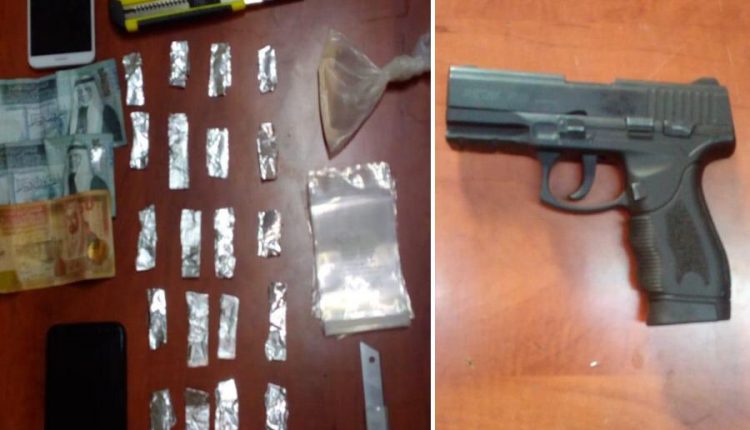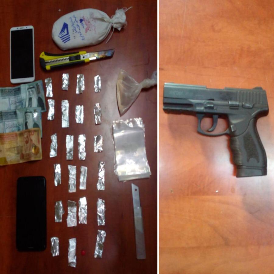 واضاف الناطق الإعلامي أن من بين المقبوض عليهم خلال تلك الحملات ١١ شخصاً ألقي القبض عليهم في مناطق مختلفة من العاصمة وبحوزتهم كميات من المواد المخدرة و أربعة أسلحة نارية من خلال ١١ قضية منفصلة توزعت على مناطق جنوب وشمال وشرق ووسط العاصمة ، حيث القي القبض على ثلاثة أشخاص جنوب العاصمة من بينهم اثنان القي القبض عليهما ضمن قضيتين منفصلتين في منطقة الزهور وتبين انهما مطلوبان وضبط بحوزة أحدهما ٨ كفوف حشيش و ٥٠٠ حبة من حبوب الكبتاجون المخدرة والآخر ضبط بحوزته سلاح ناري وكمية من المواد المخدرة ، والثالث ألقي القبض عليه في منطقة خريبة السوق وبحوزته كمية من الحبوب المخدرة ومبلغ مالي، كما ألقي القبض على اثنين في منطقتي طبربور وضاحية الرشيد شمال العاصمة أحدهما بحوزته سلاح ناري.