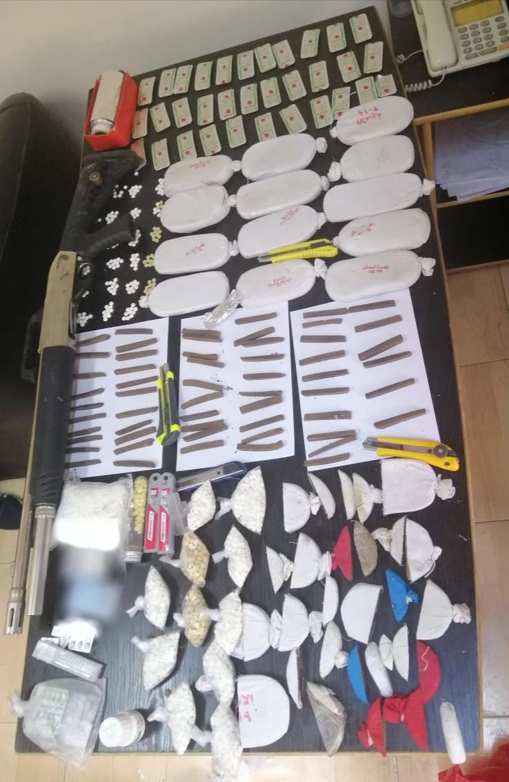 وهج 24 : قال الناطق الاعلامي باسم مديرية الامن العام ان العاملين في ادارة مكافحة المخدرات نفذوا صباح اليوم حملة امنية باسناد من الفريق الخاص التابع للادارة في لواء ناعور جنوب العاصمة دوهم خلالها اماكن تواجد عدد من تجار ومروجي المواد المخدرة ، حيث القي القبض في المداهمة الاولى على شخصين وضبط بحوزتهما ٢١ كفا من مادة الحشيش المخدرة وكمية من ذات المادة مقطعة ومجهزة للبيع ، اضافة الى ٤٣٣٦ حبة مخدرة وسلاح ناري ، فيما القي القبض على خمسة اشخاص اخرين في منزلين جرى مداهمتهما وعثر في تلك المنازل على مجموعة من القوارير المزروعة بمادة الماريجوانا المخدرة ، فيما القي القبض في المداهمة الاخيرة على شخص مطلوب بحوزته كمية من المواد المخدرة .