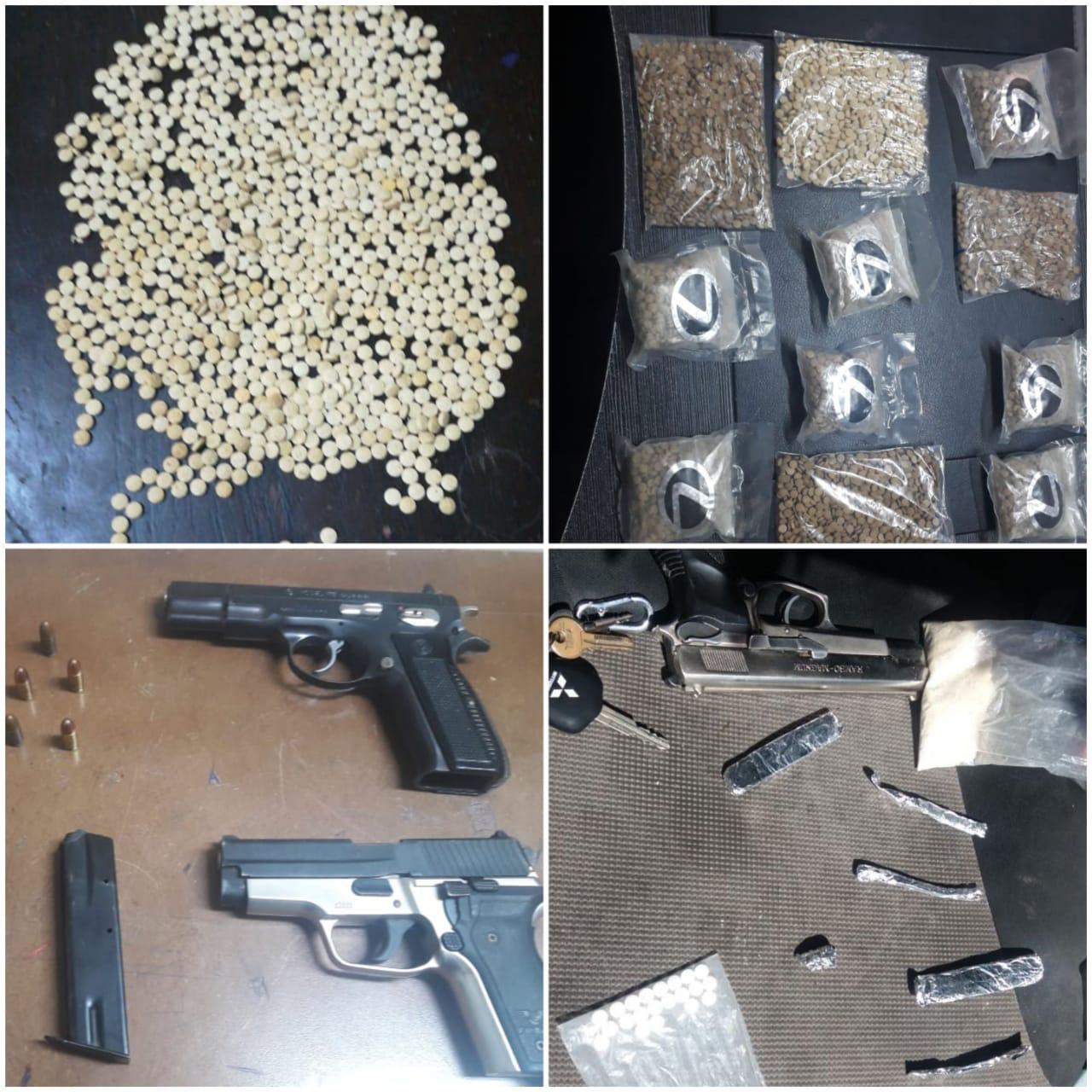 كما وتم في العاصمة التعامل مع اربع قضايا اخرى في مناطق (الوحدات ، ضاحية الاقصى ، الدوار السابع ) القي القبض خلالها على اربعة مروجين ضبط بحوزة الاول سلاح ناري وثلاثة كفوف من مادة الحشيش المخدرة ، فيما ضبط بحوزة الثاني سلاحين ناريين وكمية من المواد المخدرة ، وضبط بحوزة الثالث كف من مادة الحشيش المخدرة وقطع من ذات المادة مقطعة ومجهزة للبيع وضبط بحوزة الاخير كميات متفرقة من المواد المخدرة .