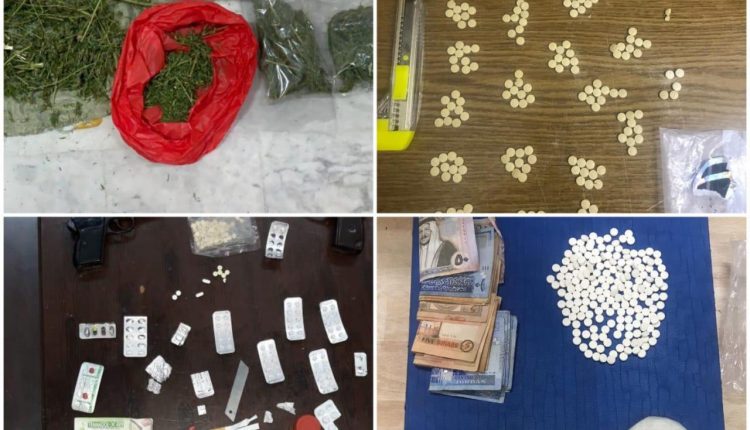 فيما جرى القاء القبض على ٣ مروجين في احدى مناطق البادية الوسطى بعد مداهمة أحد المنازل وضبط بحوزتهم ٣٠٠٠ حبة من حبوب الكبتاجون المخدرة وكمية من مادة الحشيش المخدرة وسلاح ناري، وفي محافظة اربد القي القبض على شخصين أحدهما مطلوب داخل مركبة وبحوزتهما ما يقارب ٣٠٠ حبة من حبوب الكبتاجون المخدرة وعدد من قطع الحشيش وكميات أخرى معدة للبيع، وفي لواء الرصيفة بمحافظة الزرقاء ألقي القبض على مروج داخل منزله وبحوزته نصف كف من مادة الحشيش وكميات من الحبوب المخدرة مختلفة الأنواع وسلاحان ناريان، في حين ألقي القبض على آخر في محافظة الكرك داخل أحد المنازل وبحوزته كميات متفرقة من المواد المخدرة وسلاح ناري والقي القبض على اخر في محافظة الكرك كذلك وضبط بحوزته ٣٠٠ حبة مخدرة ، فيما تم مداهمة منزل مروج في مدينة العقبة وضبط بحوزته ١٠٠ قطعة من مادة الحشيش المخدرة المعدة للبيع .