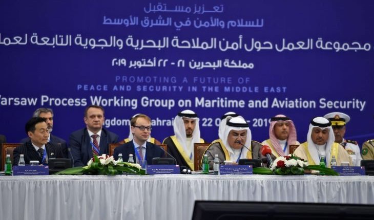 وقال البيان إن المنامة “تستضيف مجموعة العمل حول أمن الملاحة البحرية والجوية التابعة لعملية وارسو بالتعاون مع الولايات المتحدة وبولندا ومشاركة أكثر من 60 دولة”.