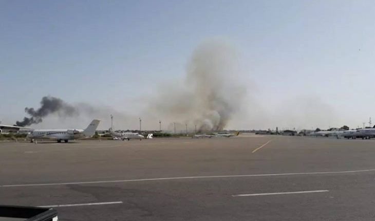وقالت قناة “فبراير” (خاصة) إن “الطيران الإماراتي المسير الداعم لحفتر استهدف مطار معيتيقة الدولي”.