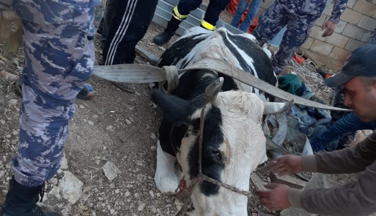 إنقاذ بقرة سقطت داخل حفرة في محافظة عجلون