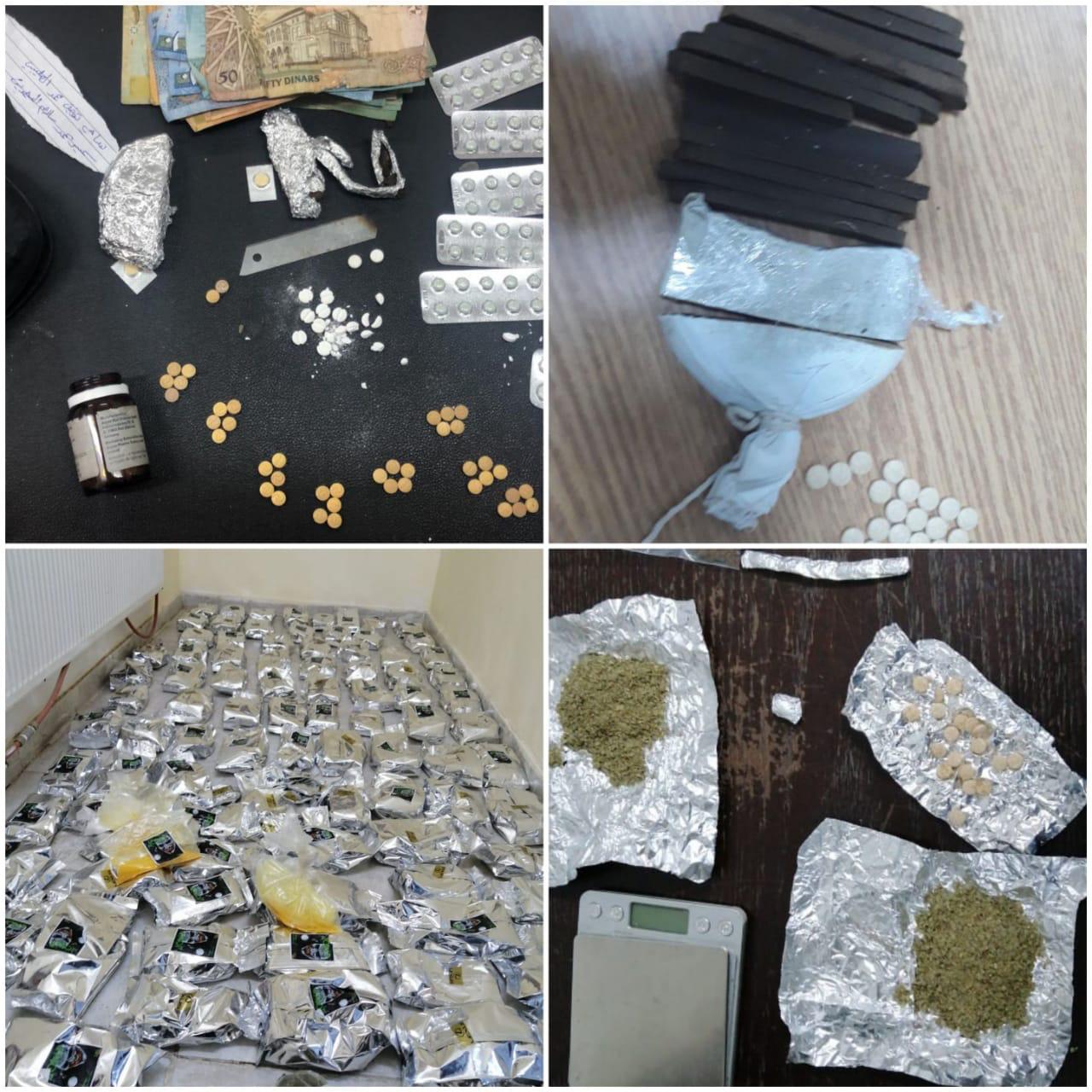 في الوقت الذي القي فيه القبض على 3 أشخاص داخل منزل في منطقة جبل عمان و بحوزتهم كميات من الحبوب و الحشيش و بودرة الجوكر، فيما القي القبض على 3 أشخاص آخرين احدهم من جنسية عربية داخل مركبة بعد أن حاولوا الفرار في منطقة الياسمين و بحوزتهم كمية من مادة الكريستال المخدرة. وفي منطقتي المقابلين والوحدات القي القبض على شخصين ضمن قضيتين منفصلتين و بحوزتهما كميات من المواد المخدرة مختلفة الأنواع.