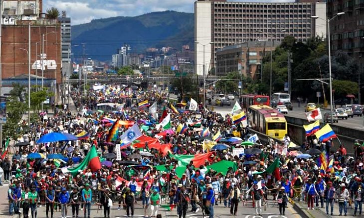وتطالب حركة الاحتجاج غير المعتادة في هذا البلد الجنوب أميركي، خصوصًا بسحب مشروع إصلاح ضريبي واحترام اتّفاق سلام مع حركة التمرّد السابق فارك، وبمزيد من الإمكانات لقطاع التربية وأيضا بإنهاء اغتيال ناشطين.