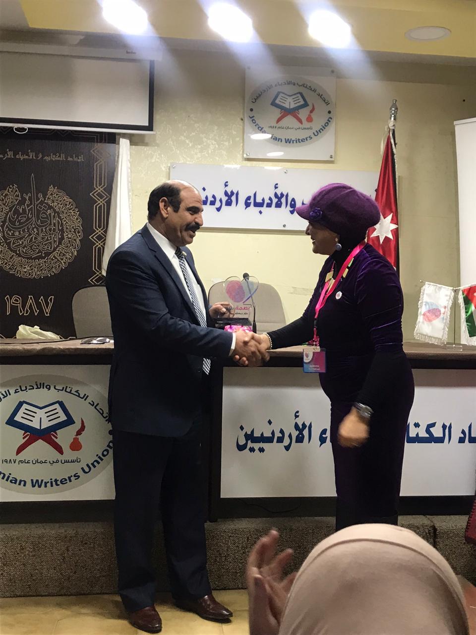وقال راعي الحفل رئيس اتحاد الكتاب والادباء الاردنيين عليان العدوان: قال الله تعالى في كتابه الكريم” اقرأ باسم ربك الذي خلق،خلق الإنسان من علق اقرأ، وربك الأكرم الذي علم بالقلم ،علم الإنسان مالم يعلم”، نرحب بكم في مقر اتحاد الكتاب و الأدباء الأردنيين، سائلين الله القدير أن تكون المسابقة ممتعة و مفيدة لكم جميعا، لإعادة الهيبة للغتنا العربية و نشرعادة القراءة والتمحيص بين أبنائنا من جميع الفئات، ويأتي دعما هذا من منطلق دورنا كهيئات ثقافية فاعلة وراعية وداعمة للمشهد الثقافي في مجتمعنا الاردني بصفة عامة، فرعاية مثل هذه البراعم الواعدة يخدم الوطن في قادم الايام لان المسيرة الثقافية هي استمرارية من جيل الى جيل فمثل هذه المسابقات ترسم في ذهنية هذه النخبة من ابنائنا وترسخ الثقافة والادب وتصقل شخصيتهم وتزرع فيهم روح التحدي الفكري والعقائدي وتبني اجيال مثقفة وواعية لان الانسان هو الانسان الفكر ويستهدف جميع فئات مجتمعاتنا الاصحاء منهم وذوي الامراض ومساعدة منا لهم ودعما لاهاليهم من الاسر التي نتكافل معهم ونثري فكر اطفالهم ايضا ونعزز شخصياتهم وثقتهم بانفسهم بالقراءة والفكر والثقافة.