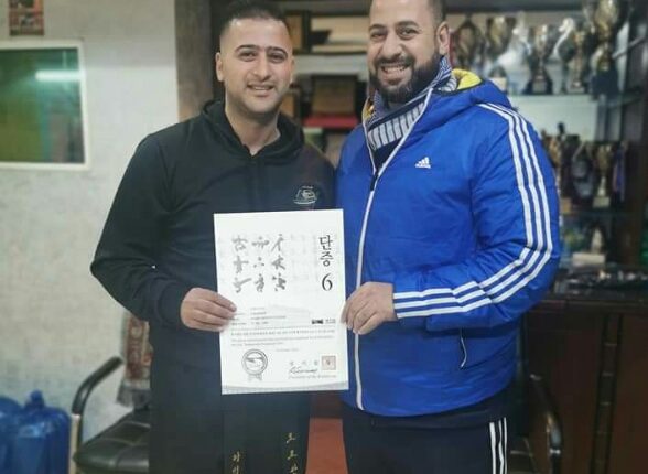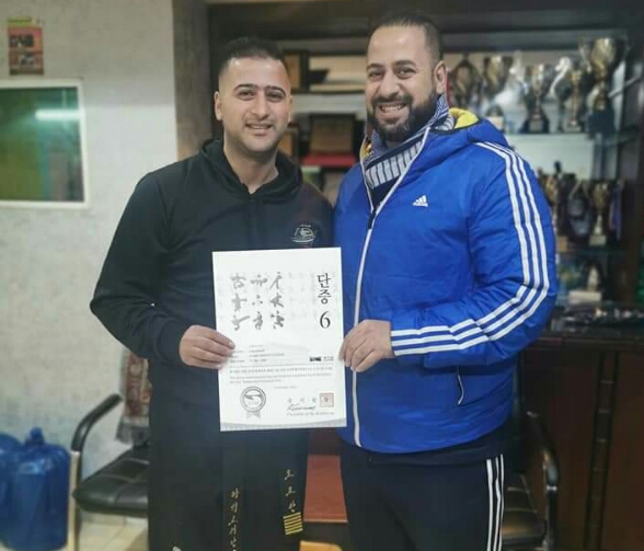 الماستر رائد كنعان يهنئ البطل العالمي كنعان كنعان بحصوله على شهاده الماستر الحزام الأسود 6 دان من كوريا