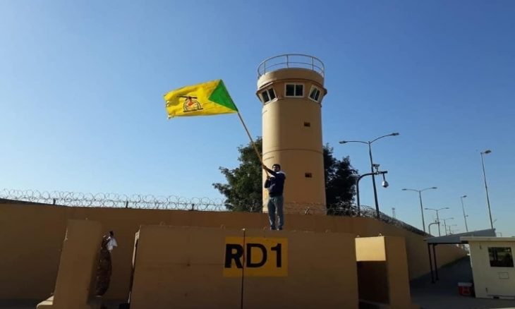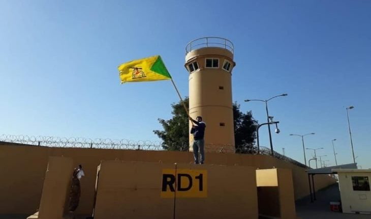 وقال شهود عيان، إن مشيعين عراقيين رفعوا أعلام الحشد على مبنى السفارة ورددوا شعارات “الموت لأمريكا”…”كلا كلا أمريكا”.