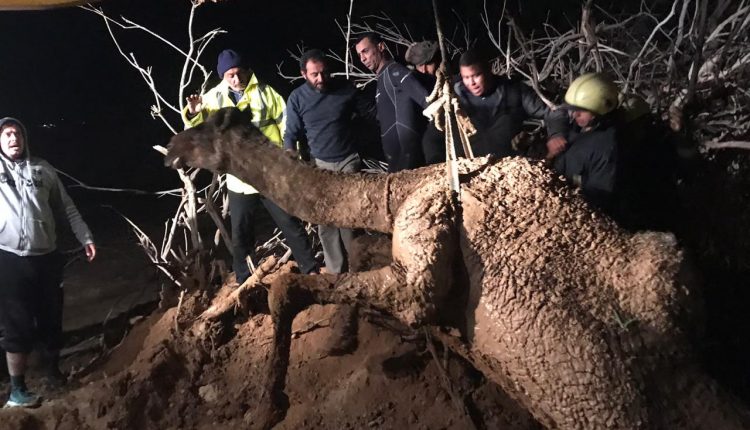 الدفاع المدني ينقذ جمل سقط في وحل طيني بمنطقة سويمة