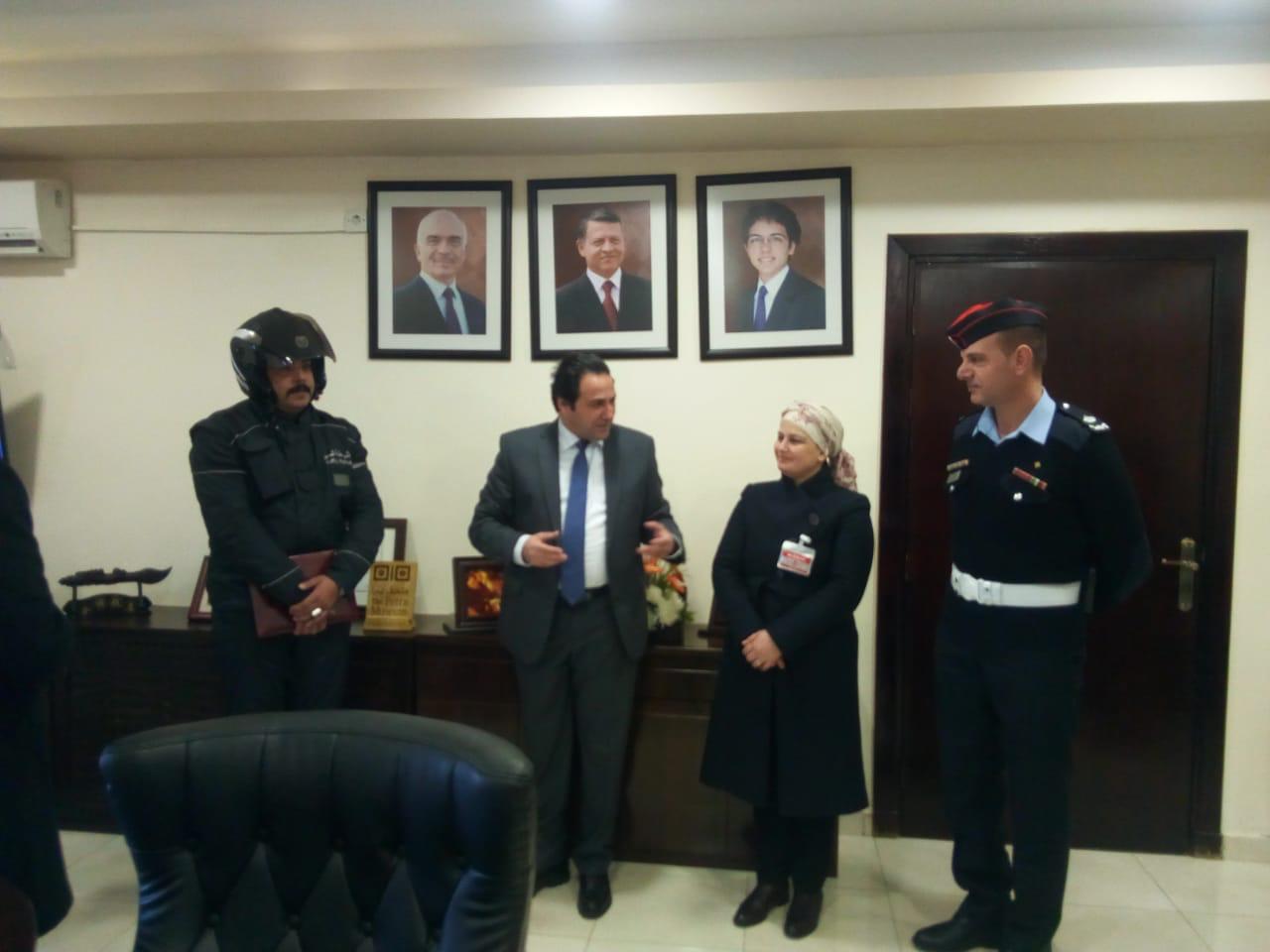 وهج 24 : كرم عطوفة رئيس مجلس مفوضي سلطة إقليم البتراء التنموي السياحي في مكتبه اليوم كل من الرقيب محمد التميمي والعريف بلال القطيمات العاملين في قسم سير غرب معان بحضور مفوض تنمية المجتمع المحلي والبيئة الدكتورة مرام فريحات ورئيس قسم السير الرائد علي الرعود وذلك لما تميز به رجال السير من حسن الأمانة وجهودهم المميزة في الميدان.