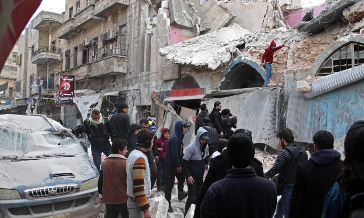 وأفادت مصادر محلية بأن 10 مدنيين قتلوا، وأصيب العشرات في قصف جوي لطائرات النظام على سوق شعبية في مدينة إدلب شمالي سوريا.