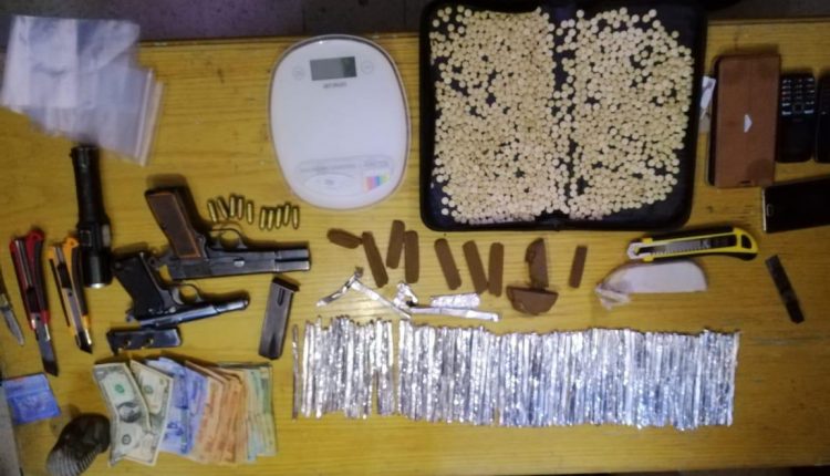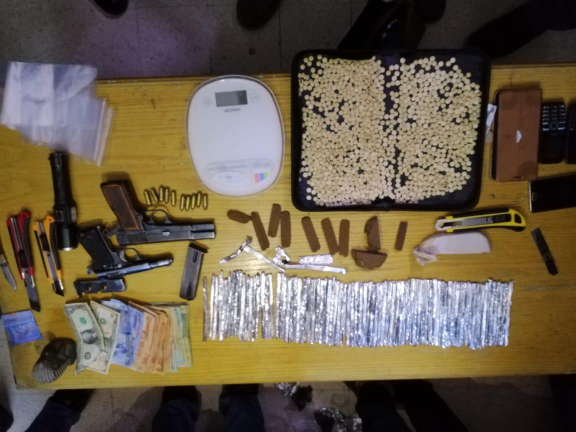 وفي ذات السياق فقد قامت قوة امنية من ادارة مكافحة المخدرات وباسناد من البحث الجنائي وشرطة العقبة من مداهمة منزل شخص مطلوب ومشتبه به بقضايا الاتجار بالمواد المخدرة بعد التأكد من تواجده داخله وبحوزته كميات كبيرة من تلك المواد ، حيث القي القبض عليه وبتفتيش المنزل عثر داخله على (١٣٧٥) حبة مخدرة وكمية من مادة الحشيش المخدرة المعدة للبيع وسلاح ناري ، وضبط داخل المنزل كذلك شخص اخر ضبط بحوزته سلاح ناري وبوشر التحقيق معهما .