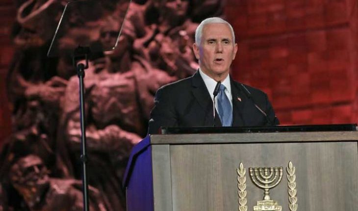 وقال بنس في حفل إحياء ذكرى مرور 75 عاما على تحرير معسكر “أوشفيتز” النازي “يجب علينا أن نقف أقوياء (…) ضد الحكومة الوحيدة في العالم التي تنكر سياستها وقوع المحرقة“.