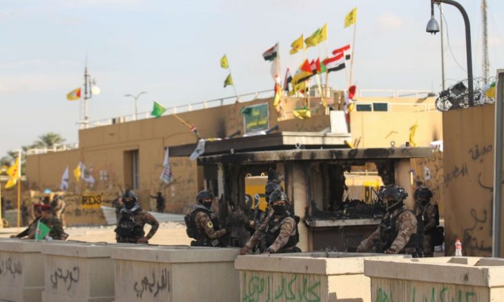 وأدان رئيس حكومة تصريف الأعمال العراقية عادل عبد المهدي استهداف السفارة الأمريكية، وقال إنه أمر بملاحقة المسؤولين عن الهجوم لتقديمهم للعدالة.