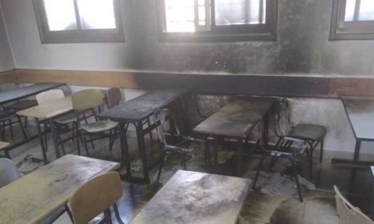 وأضاف عواد أن النيران أتت على كامل الغرفة الصفية.