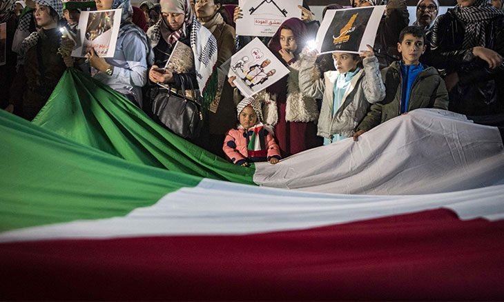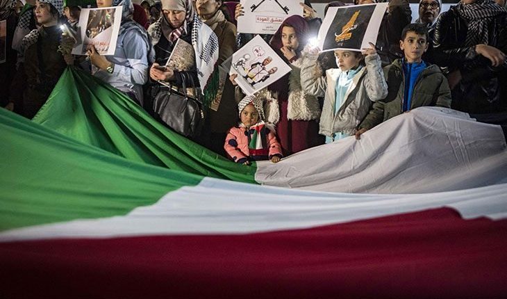 وكشف الكاتب العام لمجموعة العمل الوطنية من أجل فلسطين عزيز هناوي، عزم هيئات مدنية مناصرة للقضية الفلسطينية تنظيم مظاهرة شعبية كبيرة، من المتوقع أن تكون على شكل مسيرة، الأسبوع المقبل رفضاً للصفقة الأمريكية الصهيونية، وقال إن عدداً من المنظمات سيجتمعون اليوم السبت في مقر الجمعية المغربية لمساندة الكفاح الفلسطيني من أجل الاتفاق حول توقيت ومكان المظاهرة الشعبية التي ستنظم خلال الأسبوع المقبل.