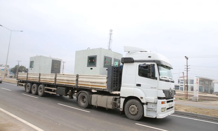 وانطلقت 10 شاحنات محمّلة بكبائن الحراسة المتنقلة، الثلاثاء، من قضاء ريحانلي، إلى نقاط المراقبة التركية في إدلب.