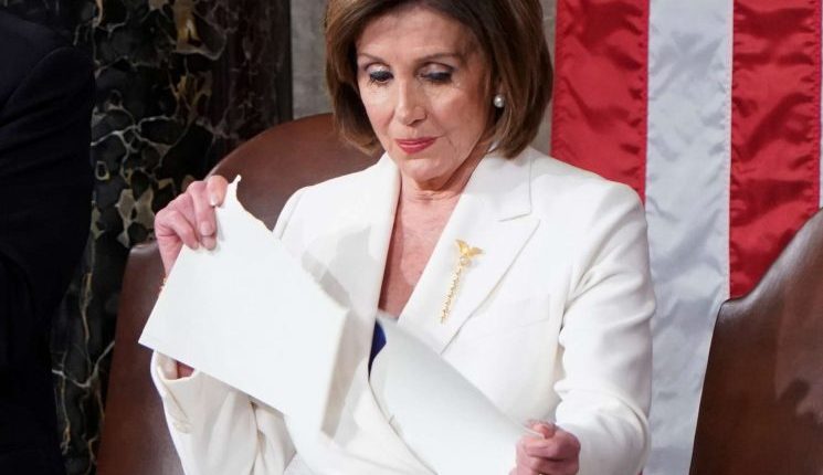 بيلوسي تمزق نسخة من خطاب ترامب في الكونغرس الأمريكي