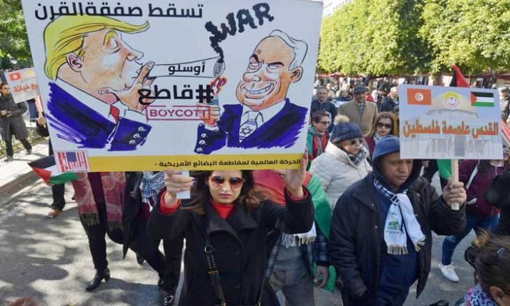 وشهدت تونس عقب إعلان الرئيس الأمريكي دونالد ترامب، في 28 يناير/ كانون ثاني الماضي، الخطوط العريضة لـ”صفقة القرن” المزعومة، تحركات احتجاجية شعبية رافضة لهذه الخطة، ومنادية بالحق الفلسطيني.